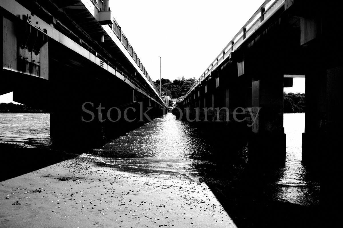 オリジナルの鉄橋の下の海の写真です。