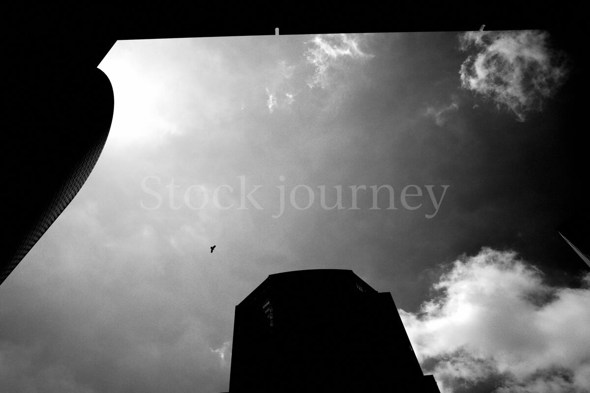 オリジナルの摩天楼に飛ぶ鳥の写真です。